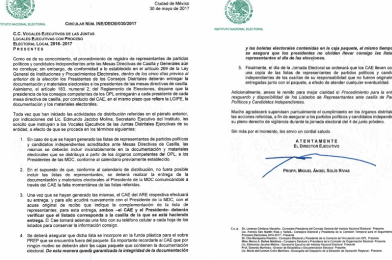 Se informa que desde el día 31 de mayo se cayó el sistema del Instituto Electoral Nacional (INE), en relación al Registro de Representantes de Casillas, por lo que no se entregará a tiempo el listado con los nombres de los representantes de cada Partido.