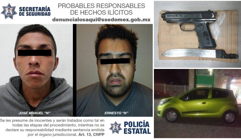 Como parte de la Estrategia Integral de Seguridad “Ecatepec Seguro”, dos sujetos fueron detenidos por Policías de la Secretaría de Seguridad (SS), por su probable relación en el robo con violencia de un vehículo.