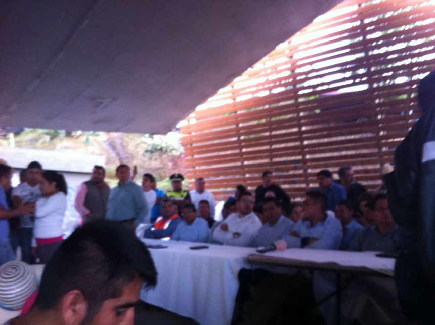 El alcalde Adán Gordo, funcionarios locales, estatales y federales están en la población también esperando a los representantes de la empresa camionera que no quieren llegar porque temen ser retenidos.