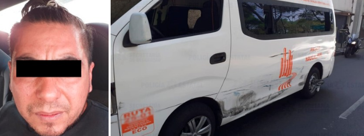 Como parte de las acciones para inhibir el delito en el transporte público, elementos de la Secretaría de Seguridad (SS), detuvieron a un sujeto que conducía una camioneta del servicio público, luego de que evadió una revisión por una policía de tránsito e intentó huir.