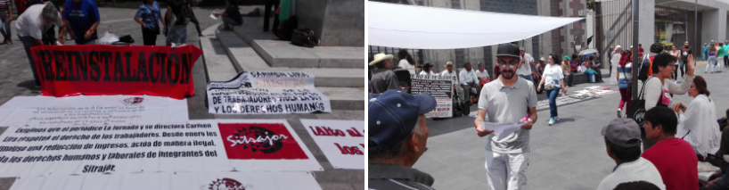 En La alameda de la ciudad de México se recolectan firmas ciudadanas para exigir que la directiva del periódico La Jornada, le regresé el trabajo a Judith Calderón Jiménez, secretaría general del sindicato de trabajadores de este medio de comunicación.