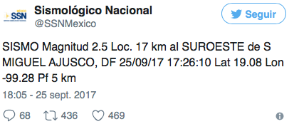 Según el SSN, el sismo sucedió a las 17:26 horas del centro del país.