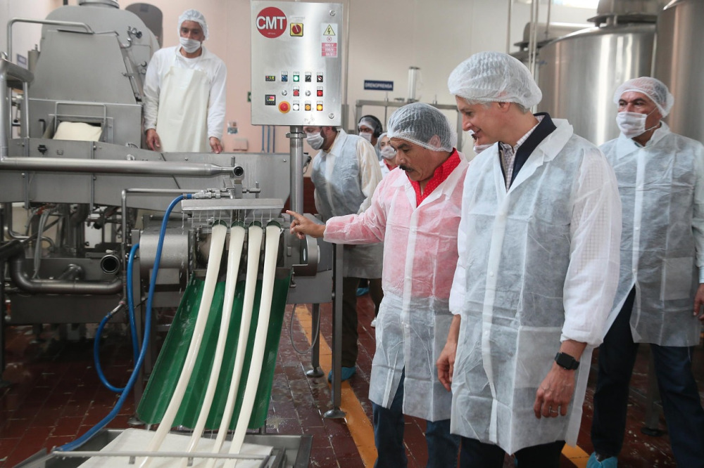 El mandatario estatal recorrió las instalaciones de la empresa mexiquense Maxilácteos, donde conoció el proceso de elaboración de quesos, y a la cual reconoció por el trabajo que han realizado durante 20 años para consolidarse en el mercado de los lácteos, ya que actualmente sus productos se venden a nivel nacional e internacional.