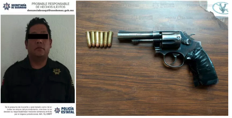 El detenido portaba consigo un revólver calibre 38 especial marca Smith&Wesson con el escudo del Estado de México, y seis cartuchos del mismo calibre, por lo que fue trasladado al Ministerio Público de Otumba que se encargará de resolver su situación legal.