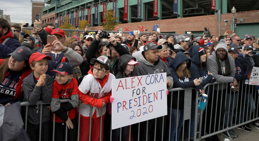 Miles de personas salieron a las calles este miércoles para vitorear a los campeones de la Serie Mundial 2018. En autobuses turísticos, jugadores, entrenadores y directivos, acompañados de familiares, desfilaron por avenidas y calles de Boston. “Alex Cora para presidente”, decía la cartulina de un niño vestido con el uniforme de su equipo, el cual inició la celebración en Fenway Park, donde el dueño hizo la presentación del trofeo ante los miles de aficionados. Éste fue el cuarto desfile en los últimos 15 años de Medias Rojas, tras ganar por novena ocasión el título en las Grandes Ligas.