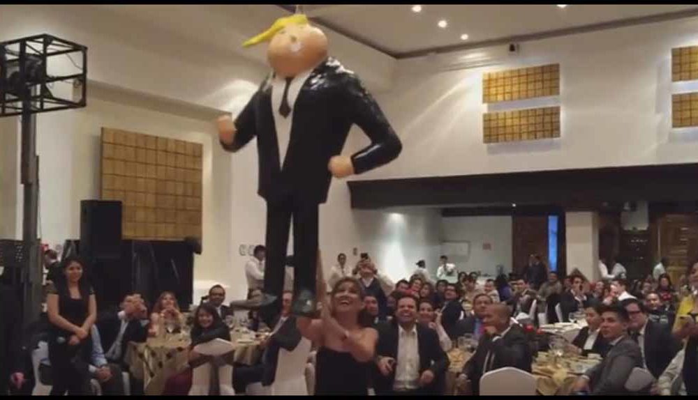 La bancada perredista en el Senado inició sus festejos decembrinos con una posada en la que rompió una piñata de Donald Trump y, entre rechiflas y risas, le dedicó el grito que se oye en los estadios: “… eeeeeh puto!!!”