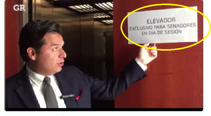 El senador del PRD Zoe Robledo anota que los elevadores del Senado tienen tres características: son ineficientes, son insuficientes y son discriminatorios. Para él la idea de que solo los senadores puedan usar los elevadores le parece incorrecta en un edificio público.