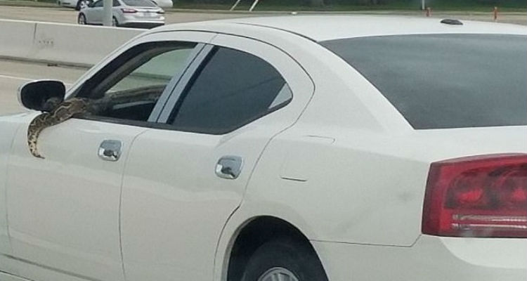 Un estadounidense presenció a una serpiente, quien se asomaba por la ventana de un vehículo en movimiento, en Texas, Estados Unidos.