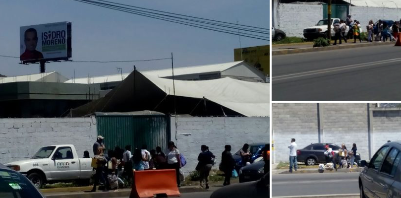 Los beneficiarios entraron por la parte de la Vía Morelos y tras la entrega de la copia de elector salieron con las despensas por la parte trasera del inmueble de la Casa de Gobierno del Estado de México que da a la avenida Las Torres.
