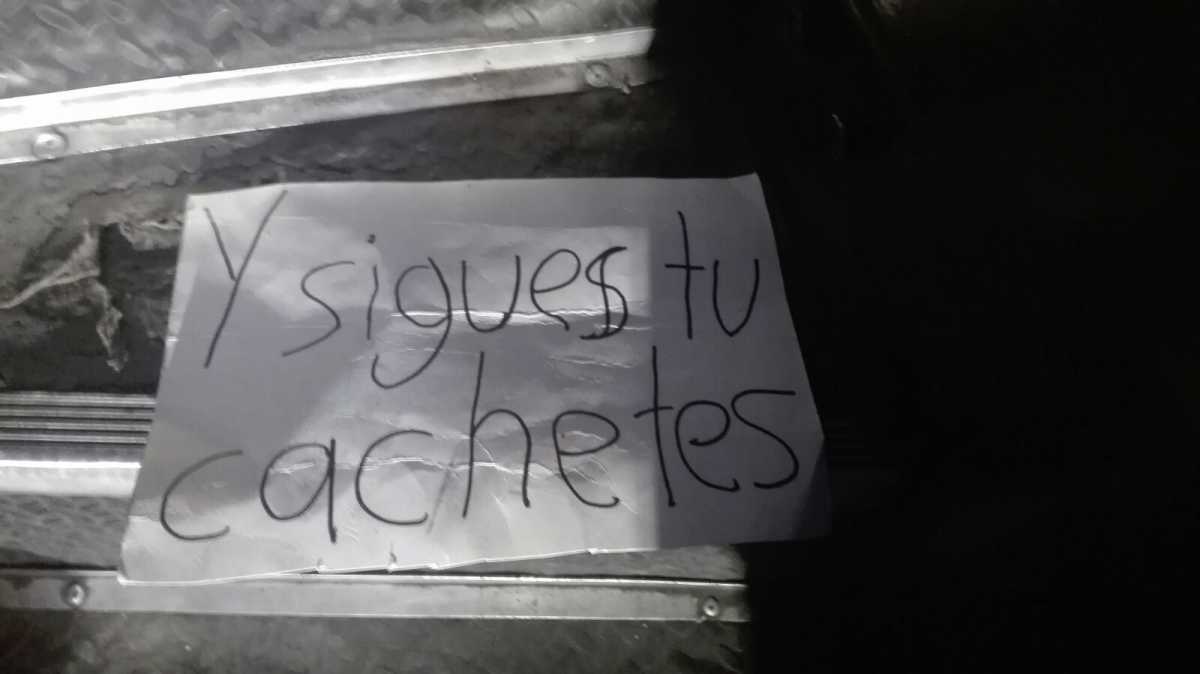 Junto a él, dejaron una cartulina blanca con la leyenda “Sigues tú, cachetes” y de acuerdo con los vecinos, el occiso presuntamente se dedicaba al robo de transporte, por lo que se sospecha se trató de un ajuste de cuentas.