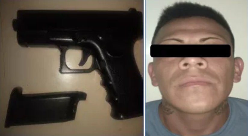 Amador Amador describió que al momento de realizar una revisión al individuo además de hallarle una replica de arma de fuego se le encontró un teléfono celular desde el que enviaba mensajes intimidatorios a sus victimas y en el que almacenaba videos de múltiples locales comerciales de la zona, por lo que ante la evidencia y a petición de la propietario del establecimiento fue trasladado de manera inmediata al Ministerio Público correspondiente para responder ante la Ley por el delito de extorsión.