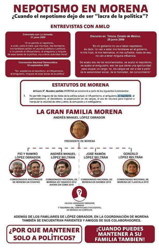 López Obrador debe dialogar con los líderes del PRD y unirse al Frente Amplio que buscan hacer para poder sacar al PRI de Los Pinos, deben unirse las izquierdas para lograr un candidato de alianza y así poder derrotar sin pretextos a gobierno priista que ha logrado imponer a gobernadores que no han sabido apoyar a los ciudadanos y si han saqueado a un país en desarrollo. La próxima reunión de ex gobernadores priistas “jóvenes” que impuso el PRI la tendrán que hacer en prisión ya que todos están siendo investigados y castigados por corruptos.