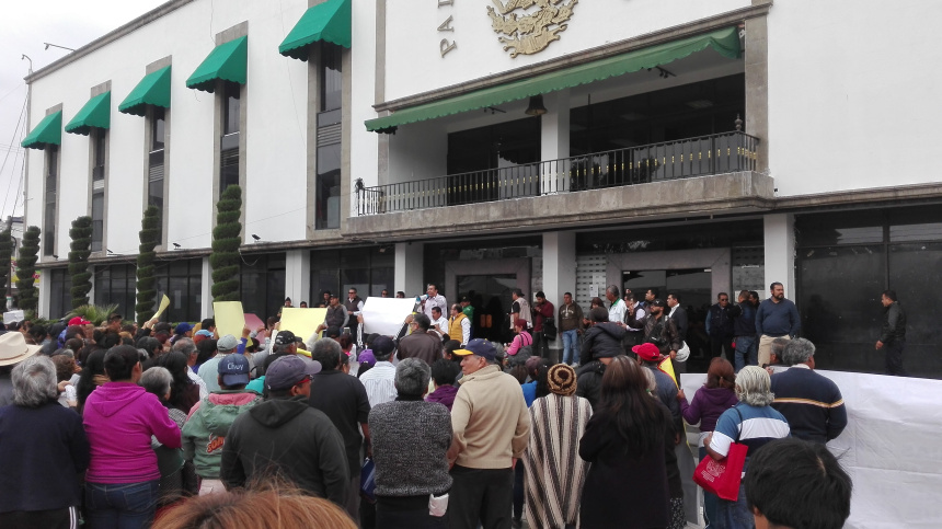 Integrantes del Sindicato de Trabajadores de la Universidad Autónoma de Chapingo (STUACH), protestaron durante el tercer informe del Rector de la Universidad Autónoma de Chapingo (UAUCh), José Sergio Barrales Domíguez, porque no se han cumplido los acuerdos pactados durante la revisión al contrato colectivo de trabajo.