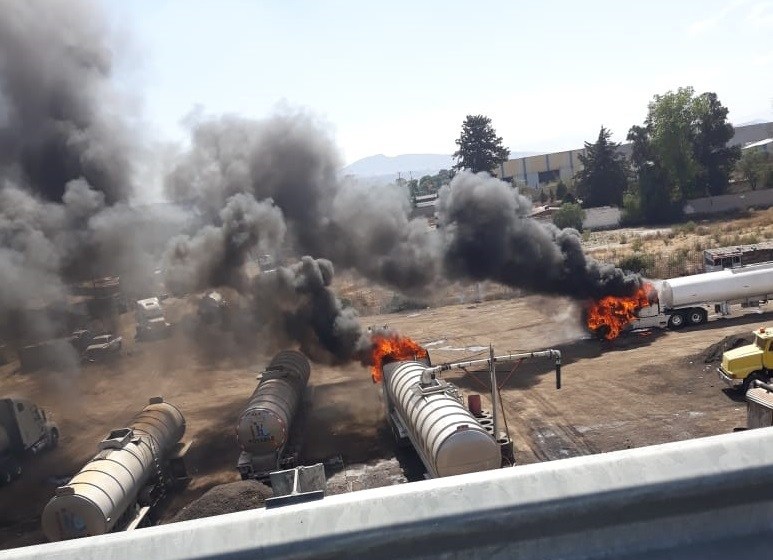 Al mediodía de este jueves, dos pipas de agua fueron incendiadas tras una disputa entre dos sindicatos por un derrotero de agua.