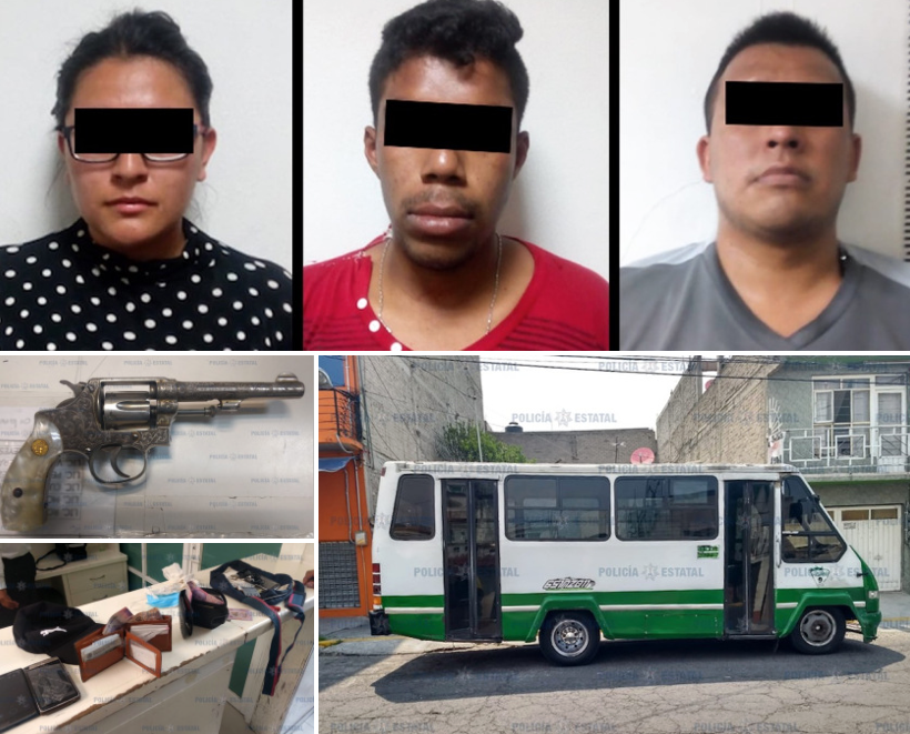 Secretaría de Seguridad (SS), en coordinación con la Policía Municipal, realiza operativos de seguridad en el transporte público, donde detienen a tres personas, entre ellas una mujer, que presuntamente asaltaron un microbús de pasajeros.