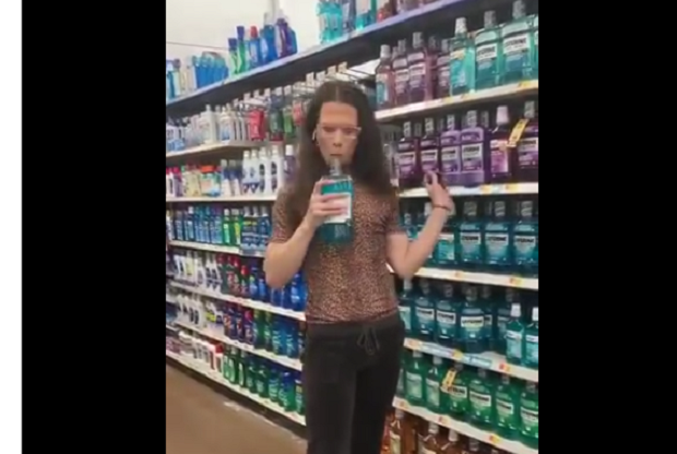 En redes sociales un usuario presumió que escupió dentro de una botella de enjuague bucal en un centro comercial.
