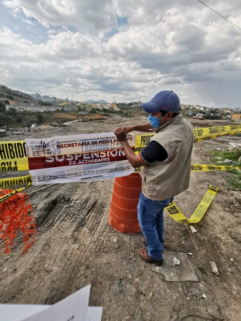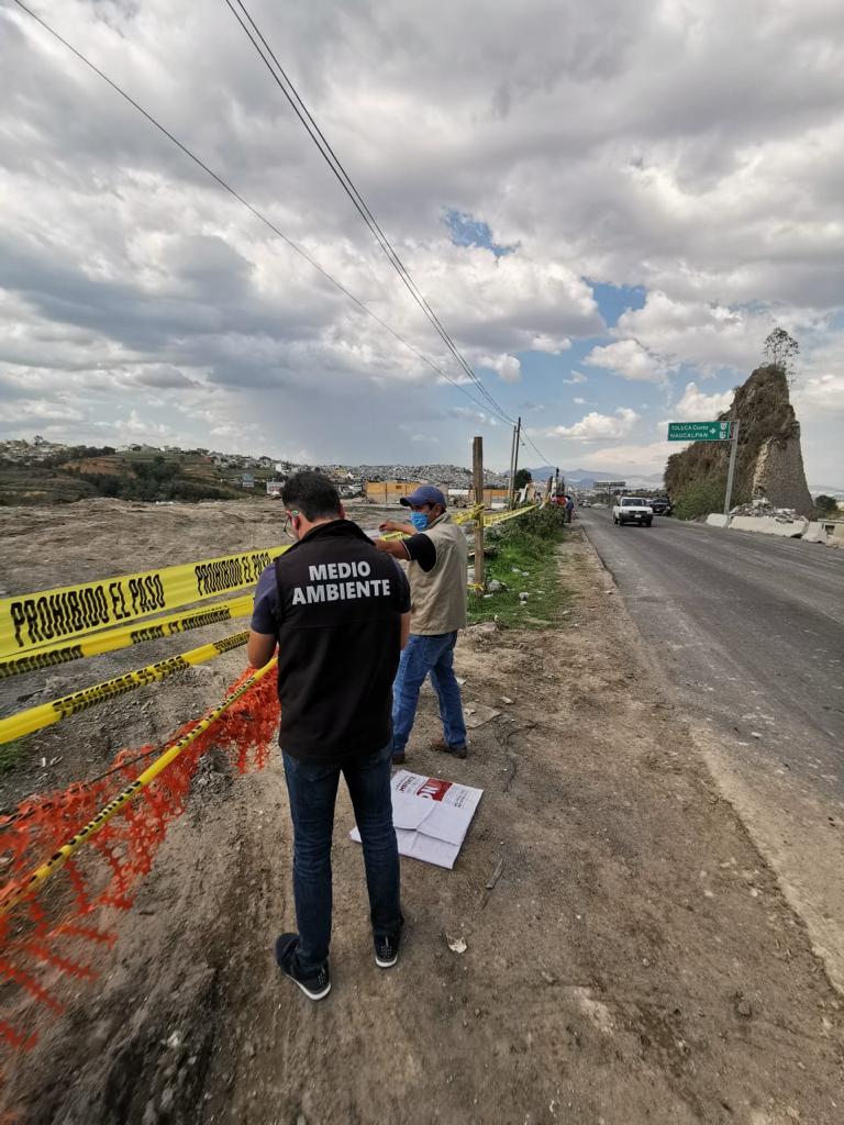 La Secretaría de Medio Ambiente municipal suspendió un tiro ilegal de cascajo en el kilómetro 8 de la carretera libre Naucalpan-Toluca.