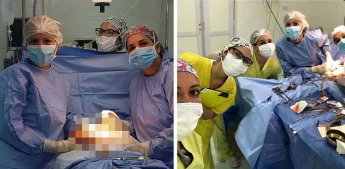 En la polémica imagen aparecen cinco personas: una cirujana, una anestesista, dos instrumentadoras y la enfermera circulante de quirófano. Todos al parecer posaron durante operación gastrointestinal, informó El Clarín.