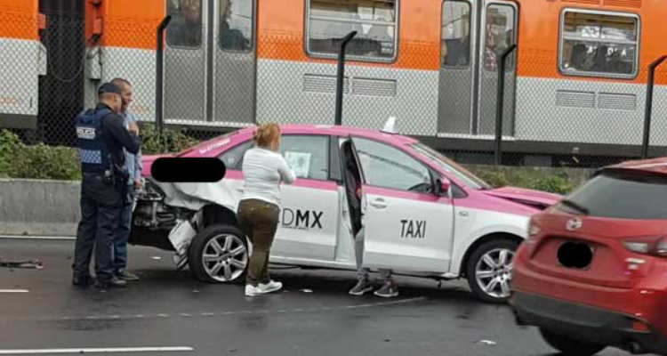 El taxi, que circulaba sobre Calzada de Tlalpan hacia Rio Churubusco, colisionó contra un vehículo policiaco; provocando caos vial en la zona.