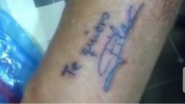 De acuerdo con el tatuador Jorge García Pérez, el hombre llegó al banco con una fotografía en blanco y negro que mostraba una frase escrita con bolígrafo azul y la firma de su mujer.