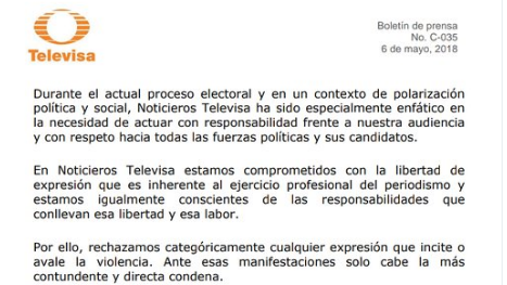 “Así, exigimos el cese inmediato de Ricardo Alemán de Milenio, donde escribe una columna diaria (Itinerario Político); de Imagen Radio, donde tiene un programa diario (La Otra Opinión); de Foro TV, donde tiene un programa semanal (La Mudanza) y de Once TV, donde tiene un programa diario (Despertador Político)”.
