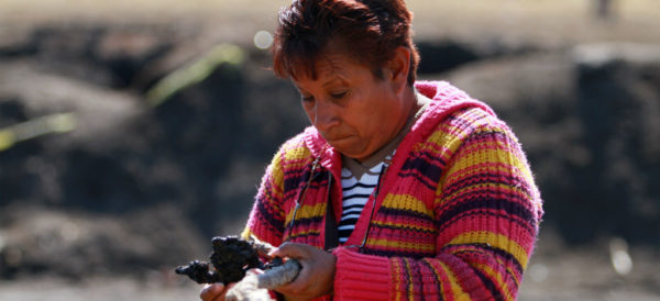María Isabel se aferra a un pedazo de tela que dice, perteneció a la ropa que portaba una de sus tres sobrinas que se encuentran en calidad de desaparecidas desde la explosión del ducto Tula-Tuxpan de Pemex ocurrida el viernes 18 de enero en Tlahuelilpan.