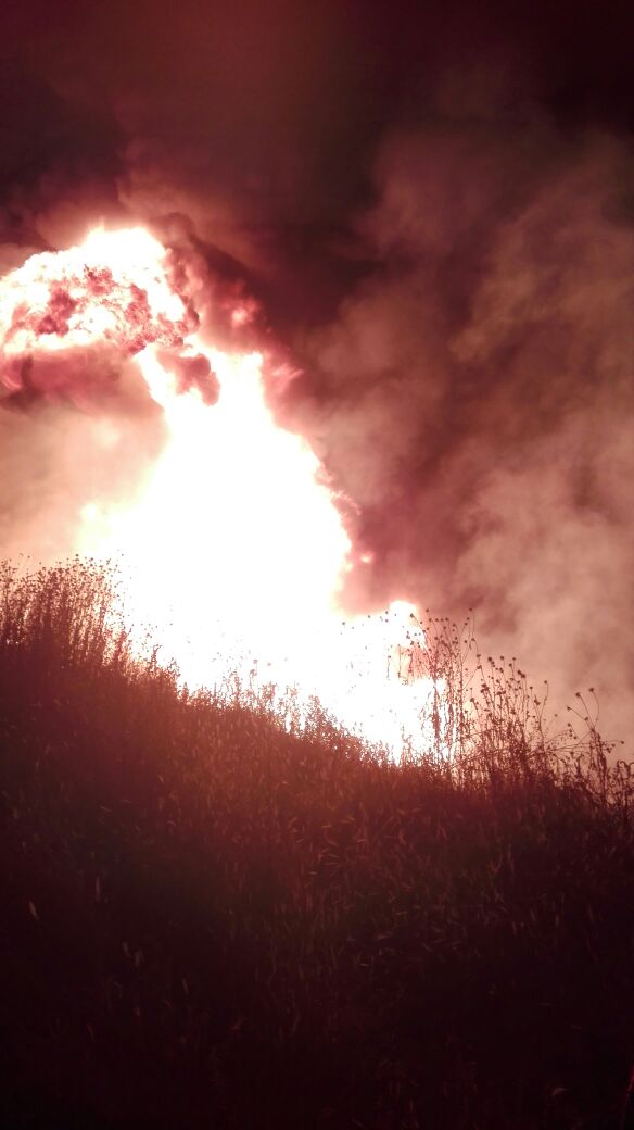 na toma clandestina en un ducto de PEMEX se incendió esta madrugada, al parecer porque las personas que en ese momento robaban combustible, no pudieron evitar una chispa que provocó el fuego.
