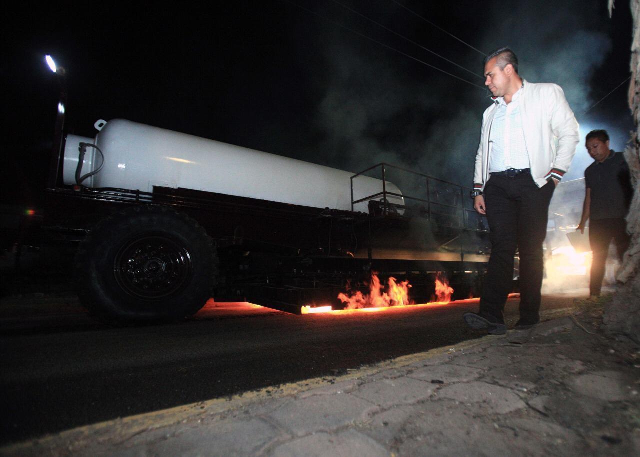 El edil supervisó personalmente las pruebas de funcionamiento de la recicladora de asfalto, que es manejada por 40 trabajadores de la Dirección de Desarrollo Urbano y Obras Públicas del ayuntamiento.
