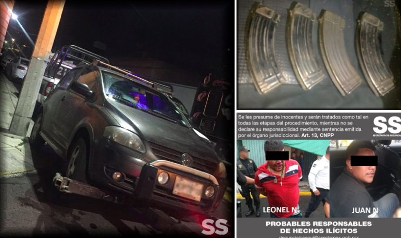Derivado de un reporte de alerta, personal de la Secretaría de Seguridad (SS) detuvo a tres personas que, minutos antes, detonaban al aire sus armas de fuego.