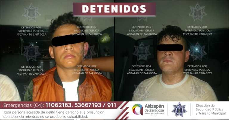 Los presuntos delincuentes, quienes se identificaron como Jorge «N» de 26 años de edad y Rafael Manuel «N» de 27, con domicilio en Tlalnepantla, fueron trasladados ante la autoridad ministerial que determinará su situación jurídica.
