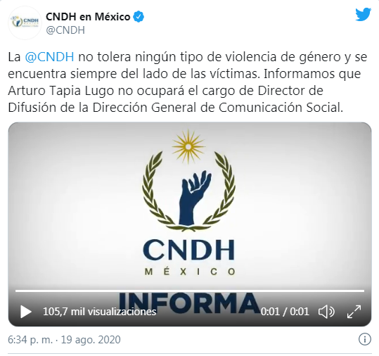 Pero la presión de usuarias en redes sociales hizo efecto, pues la CNDH ya anunció que Arturo Tapia no laborará en la Comisión.