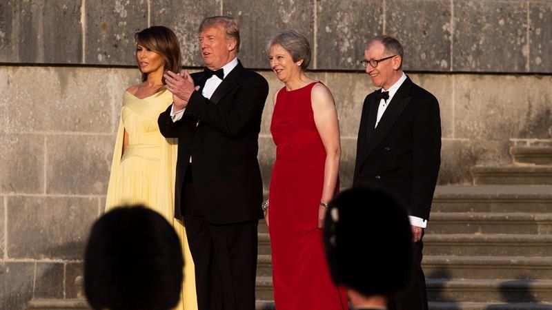 May abogó esta noche por un acuerdo de libre comercio con Estados Unidos en una cena celebrada en el palacio de Blenheim, con la que recibió a Trump y a su esposa, Melania.