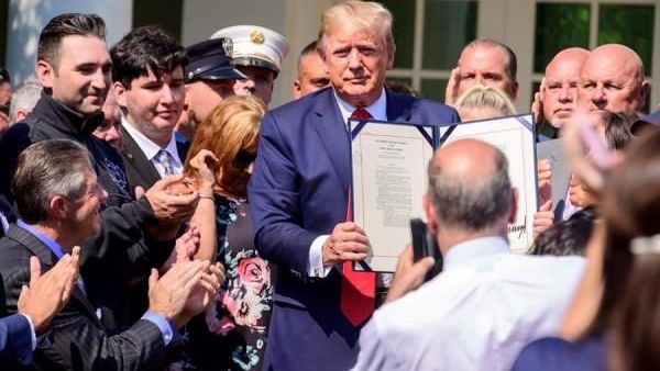 “Hoy nos unimos como una sola nación para apoyar a nuestros héroes del 11 de septiembre”, dijo el mandatario durante el acto previo a la firma del documento, que tuvo lugar en los jardines de la Casa Blanca.