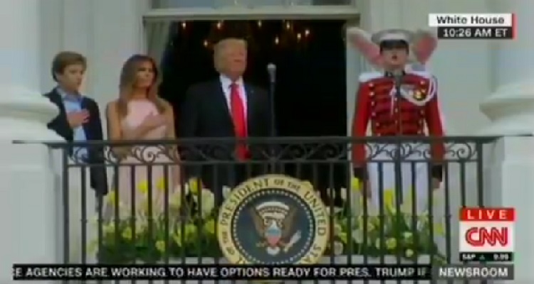 El presidente estadounidense, Donald Trump, a veces se le olvida ser nacionalista. El día de hoy durante la 139° edición del Easter Egg Roll al mandatario se le olvidó saludar durante el himno nacional.