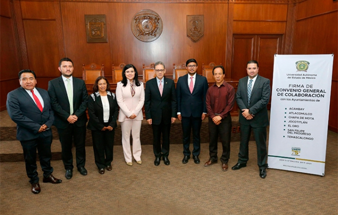 Al firmar un convenio general de colaboración con los presidentes municipales de Acambay, Chapa de Mota, El Oro, Jocotittlán, Temascalcingo, Atlacomulco y San Felipe del Progreso, Barrera Baca expresó el apoyo incondicional de la institución para que los municipios de la zona norte del Estado de México cuenten con el talento de los universitarios para potenciar su desarrollo.