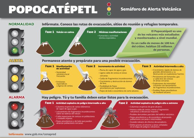 El Centro Nacional de Prevención de Desastres –CENAPRED- modificó la alerta volcánica del Popocatépetl de amarilla fase dos, a amarilla fase 3, por lo que es necesario que todos contemos con información correcta de lo que esto significa para nuestra comunidad.