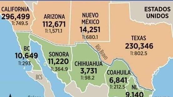 Tales como Baja California, Sonora, Chihuahua, Coahuila, Nuevo León y Tamaulipas.