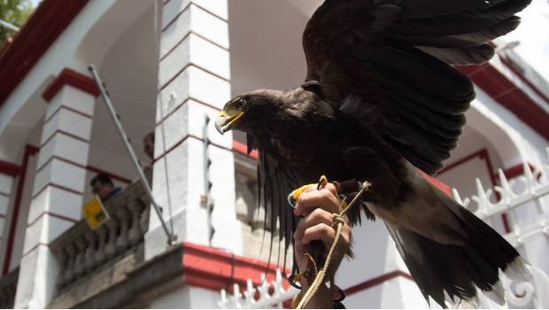 Kyya Águila, quienes acudieron con el ejemplar, son una organización de conservación del águila mexicana, quienes aseguran haber logrado que la especie regresara a la capital del país, por lo que buscan el apoyo del nuevo gobierno.
