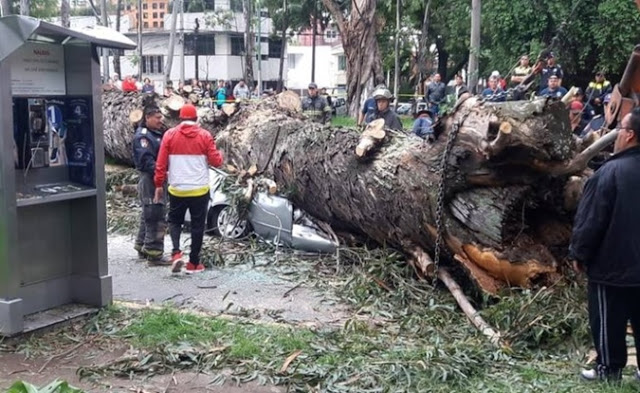 Derivado de las fuertes lluvias registradas durante los últimos días en el centro del país, se presume que el reblandecimiento de la tierra provocó la caída de este árbol que, según fuentes locales, tenía varias décadas en el lugar.