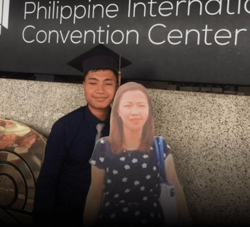 Paulo John Alinsong cumplió el sueño de su madre: estar presente en la ceremonia de graduación de su hijo. El joven licenciado compartió las imágenes en Twitter, donde se le observa acompañado de su familia y de su madre, a quien abraza muy sonriente y con un ramo de flores en el Centro Internacional de Convenciones de la ciudad de Pasay, en Filipinas.
