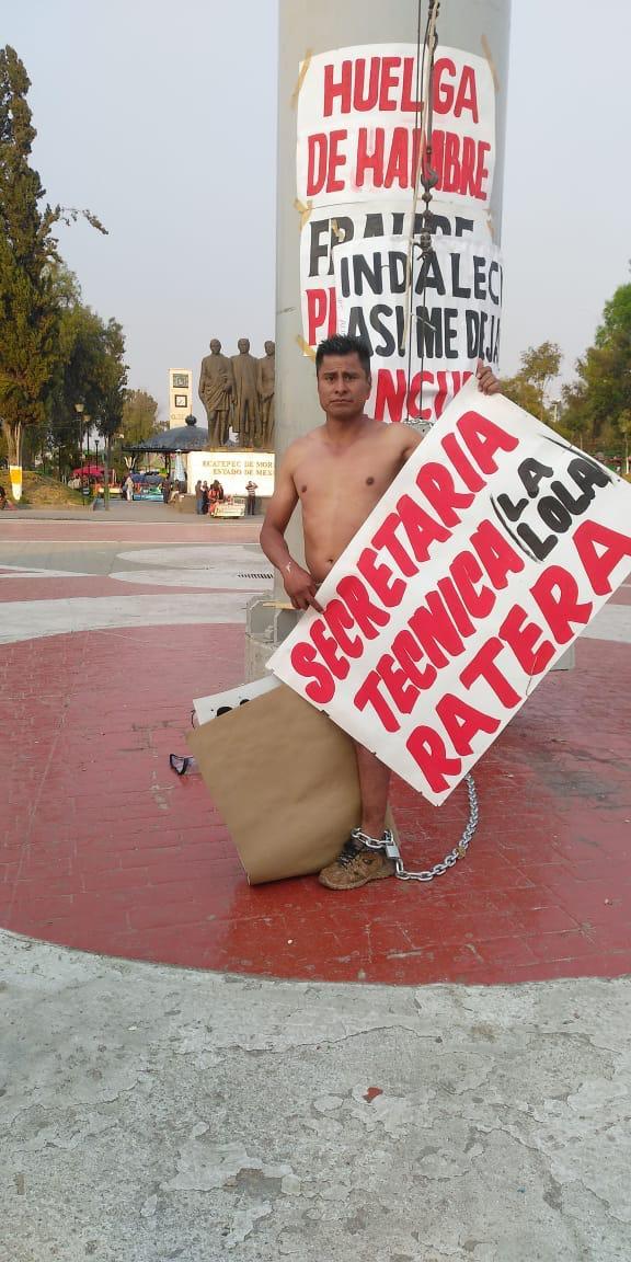 Ante la indolencia de esta mujer, el demandante tomo la decisión de declararse en Huelga de Hambre, en el hasta bandera de la explanada municipal de San Cristobal, en el centro de Ecatepec.
