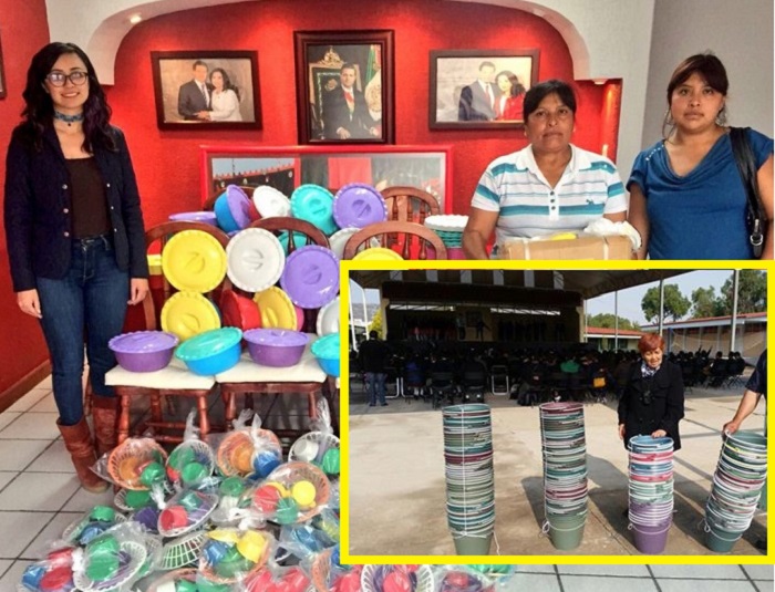 En Hidalgo, la diputada federal del PRI, María Gloria Hernández Madrid y el regidor del Partido Nueva Alianza en el ayuntamiento de Mineral de la Reforma, Víctor Olid Trejo, presumieron en sus redes sociales el reparto de distintos artículos de plástico, casi todos cubetas, como una forma de “regalo” por el Día de las Madres.