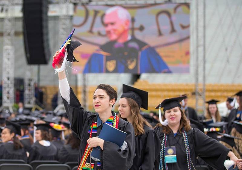 Decenas de graduados y sus familiares se pusieron de pie silenciosamente y abandonaron el domingo su ceremonia de graduación de Notre Dame cuando el vicepresidente estadounidense Mike Pence comenzó su discurso.