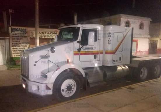 Tras marcarle el alto al operador del tracto camión Kenworth con tanque cirsterna, color blanco, se constató en la base de datos que contaba con reporte vigente de robo con violencia, perpetrado en el municipio de Ecatepec.