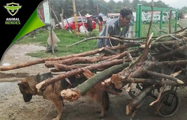 Animal Héroes denunció el caso de maltrato animal a través de su cuenta de Twitter, donde muestran la imagen del perro que es obligado a jalar una improvisada carreta que ha sido cargada con troncos de un peso considerable.