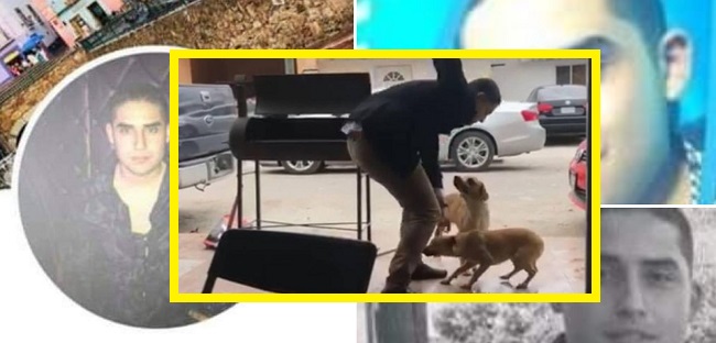 La grabación muestra al hombre, de tez morena y cabello corto, acariciar a un perro mientras que porta lo que parece ser una navaja en una mano. Otro canino se acerca a él y, cuando lo tiene de de frente, aprovecha para apuñalarlo.