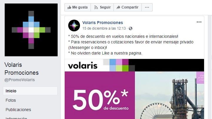 Agentes cibernéticos de la PEP, informaron que las ¨Fan Page¨ detectadas a través de patrullajes en red en la citada página social, son de Volaris, Interjet y Aeroméxico; también se cuenta con registro de denuncias ciudadanas, a través de: