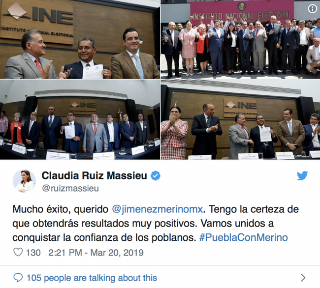 “Es una manera emblemática de reiterar la confianza que tenemos en el INE como garante efectivo de la imparcialidad, legalidad, libertad del voto y hoy, en Puebla, la comunidad está pensando en tener un gobernante estable y ese gobernante, con experiencia, conocimiento, capacidad, es Alberto Jiménez Merino”, declaró el secretario general del PRI, Arturo Zamora Jiménez, al semanario Proceso.