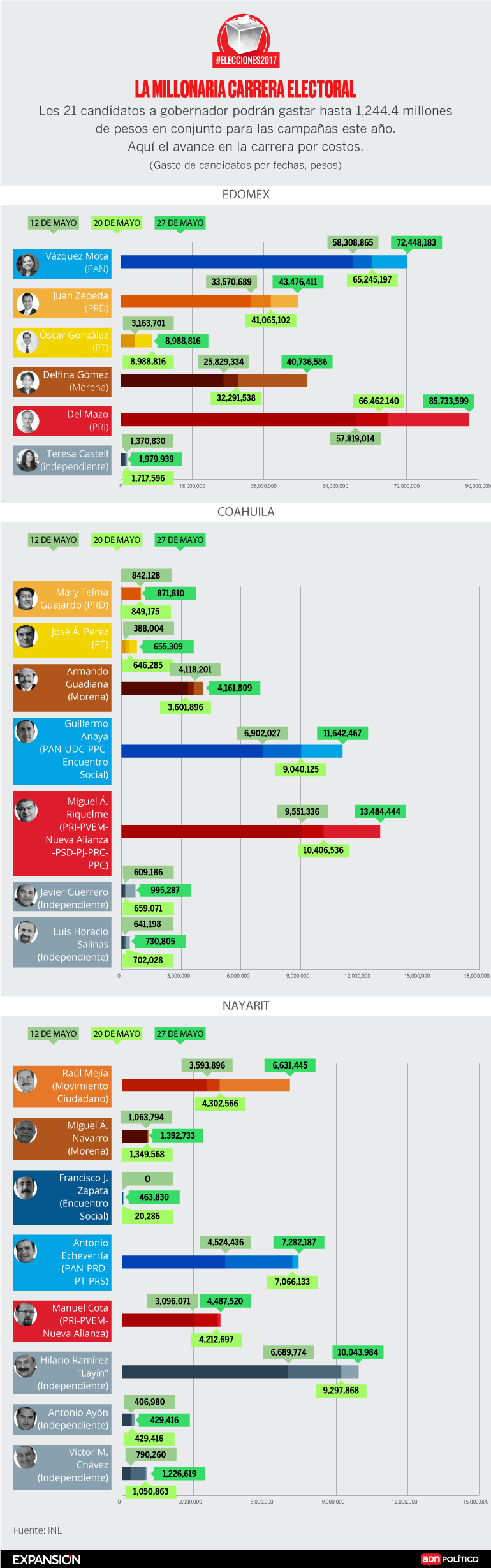En la recta final de las campañas electorales de este 2017, los 21 candidatos a gobernador pusieron el acelerador en sus gastos de campaña para tratar de conquistar el voto de sus electores.