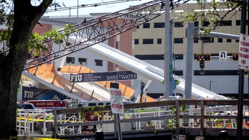 Varias personas murieron al derrumbarse un puente para peatones recién instalado sobre una calle de Miami (EE.UU.) que conectaba el paso con la zona donde se encuentra la Universidad Internacional de Florida (FIU), informaron hoy medios locales.